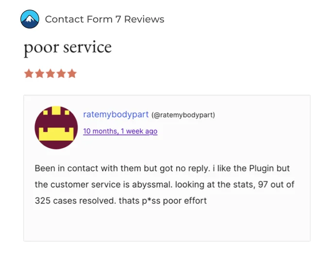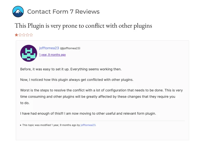 Contact Form 7 may be free, but its limitations often come at a cost. Because CF7 is so basic, users often claim they need to install extra plugins or even hire developers to add missing functionality. There’s also no dedicated support included, so troubleshooting takes time and effort. For businesses that need more than a simple form, the “free” option quickly leads to paid add-ons or switching to paid solutions. As users note, Contact Form 7 is fine for basic needs, but once you need more, expect to pay elsewhere. In short, the real cost of this free WordPress form builder is the time and tools it lacks.