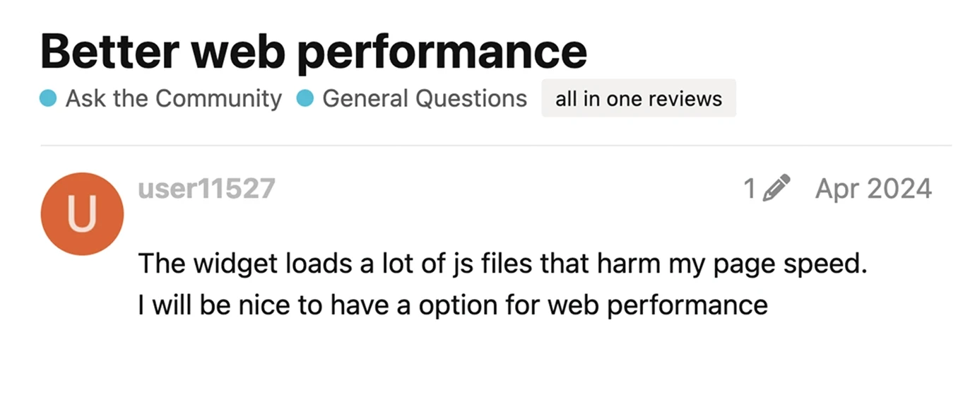 Elfsight widgets can noticeably drag down your website’s loading speed. Users have reported that Elfsight adds numerous JavaScript files that slow down their pages. In some cases, certain Elfsight widgets took over 20 seconds to load — a delay that frustrates visitors and hurts SEO by increasing bounce rates. Elfsight provides a lazy-load option and recommends placing scripts at the footer to mitigate these issues, but these extra steps highlight the performance challenges.