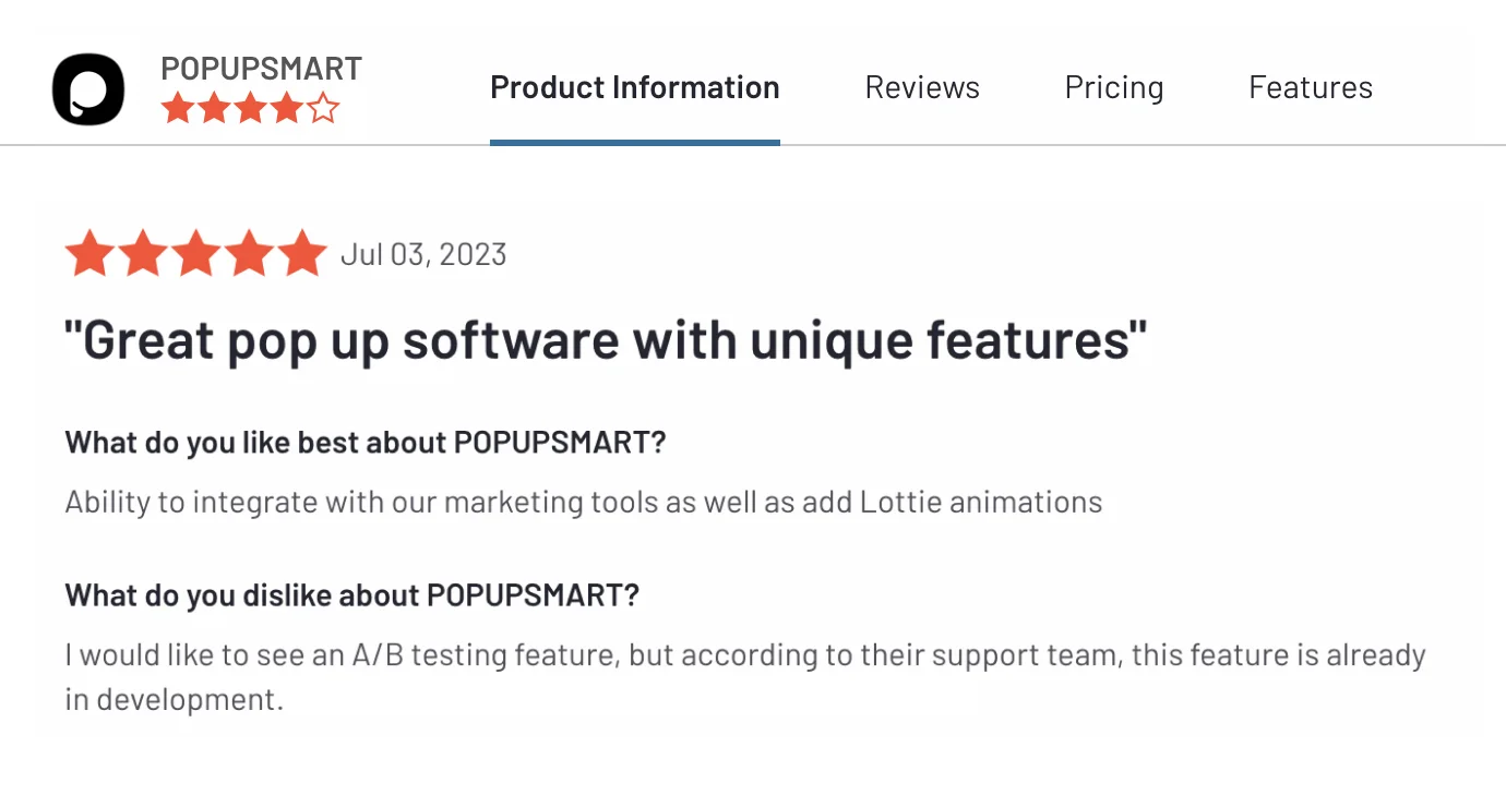 What Popupsmart's users say about that
