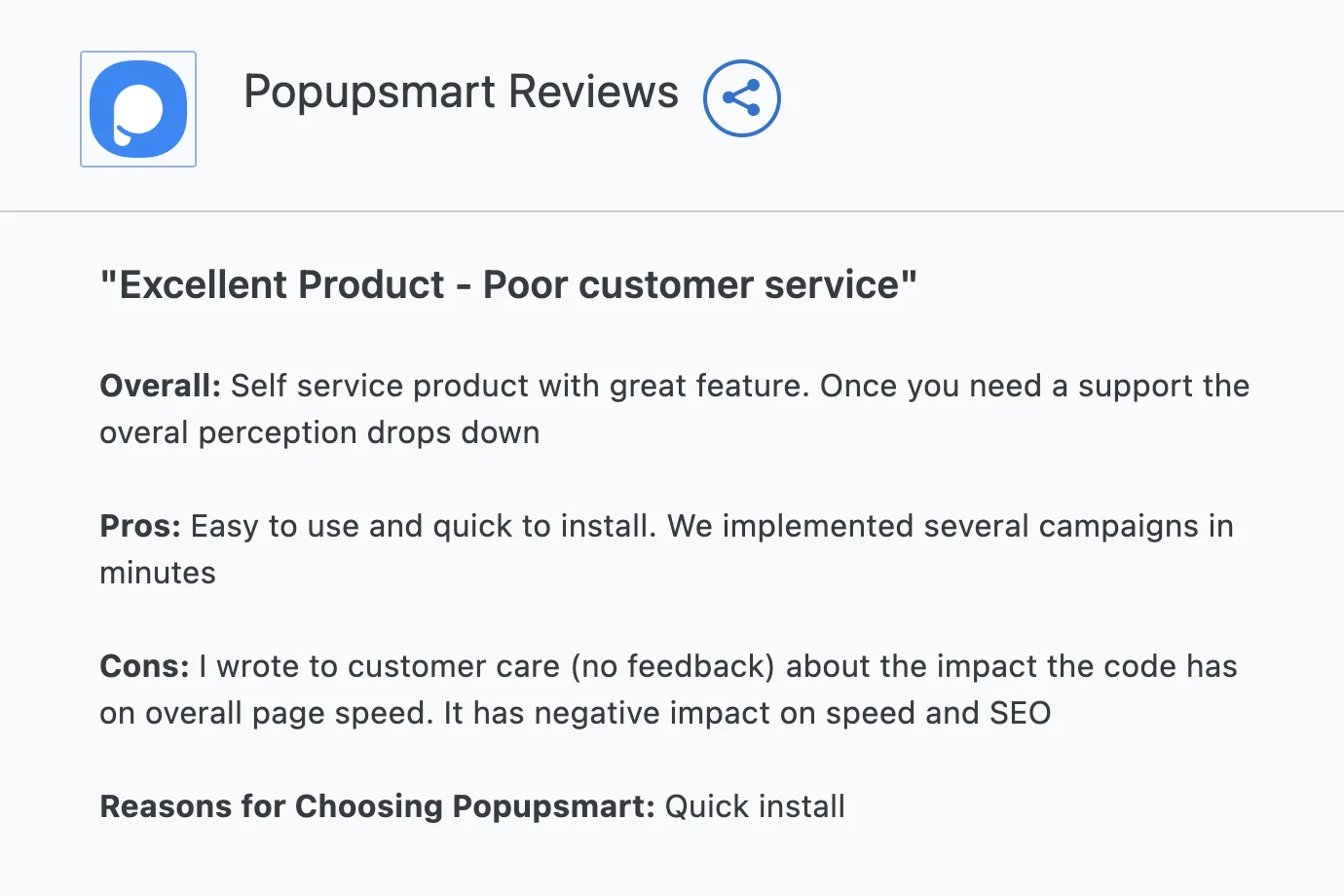 User feedback suggests that Popupsmart widgets could potentially slow down your page loading speed. This poses a risk of losing valuable conversions and bumping up your site's bounce rate. It's not the outcome you hope for, given Popupsmart's high price tag, right?