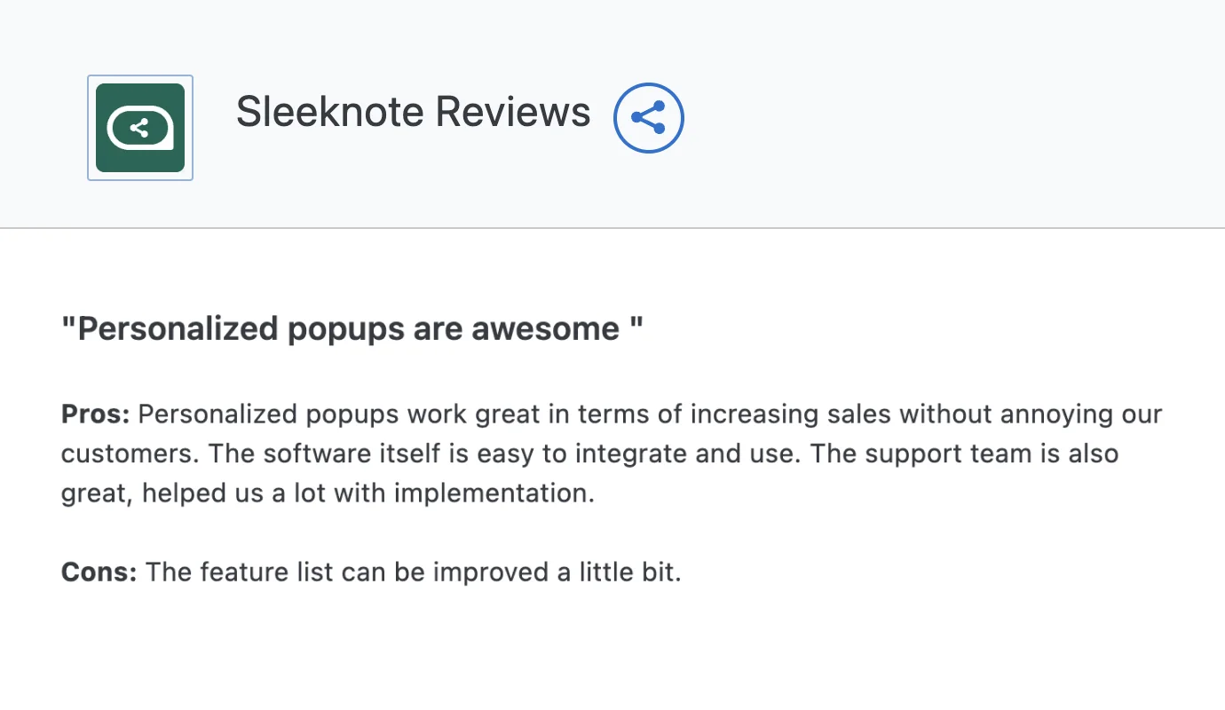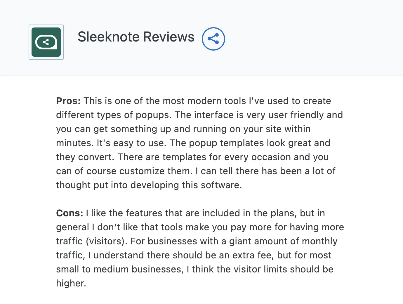 Simplicity. Users of both Sleeknote and Poptin often express concerns about their editors, finding them less intuitive and requiring time to get accustomed to. However, Poptin provides a robust support service, smoothing the learning curve. While continuous support communication isn't the ideal scenario, it's certainly a better option than navigating the platform on your own for an extended period.