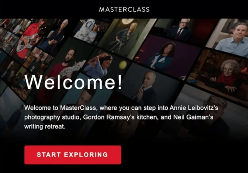 When individuals sign up for a membership, Masterclass sends them a welcome email with a list of their top expert classes to help them get started.