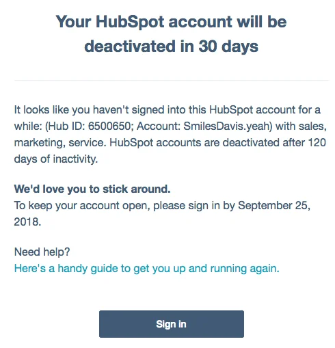 6. The account deactivation email