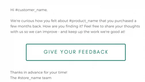 You may follow up with your consumers after they've made a purchase to learn more about their experience! Remember that you only have a limited amount of time to capture their attention, so keep it brief and straightforward. In the email design, include emoji symbols and numerical ratings so that recipients may provide rapid input.