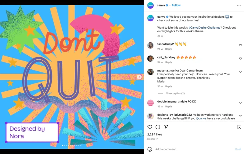 This is an excellent example of User Content Creation (UGC). Since its launch, Canva has amassed 36,000 posts under the #CanvaDesignChallenge hashtag. Now its team can share content on Instagram in a few clicks. What’s more, Canva is a leader in creativity and, in this way, allows users to express themselves.
