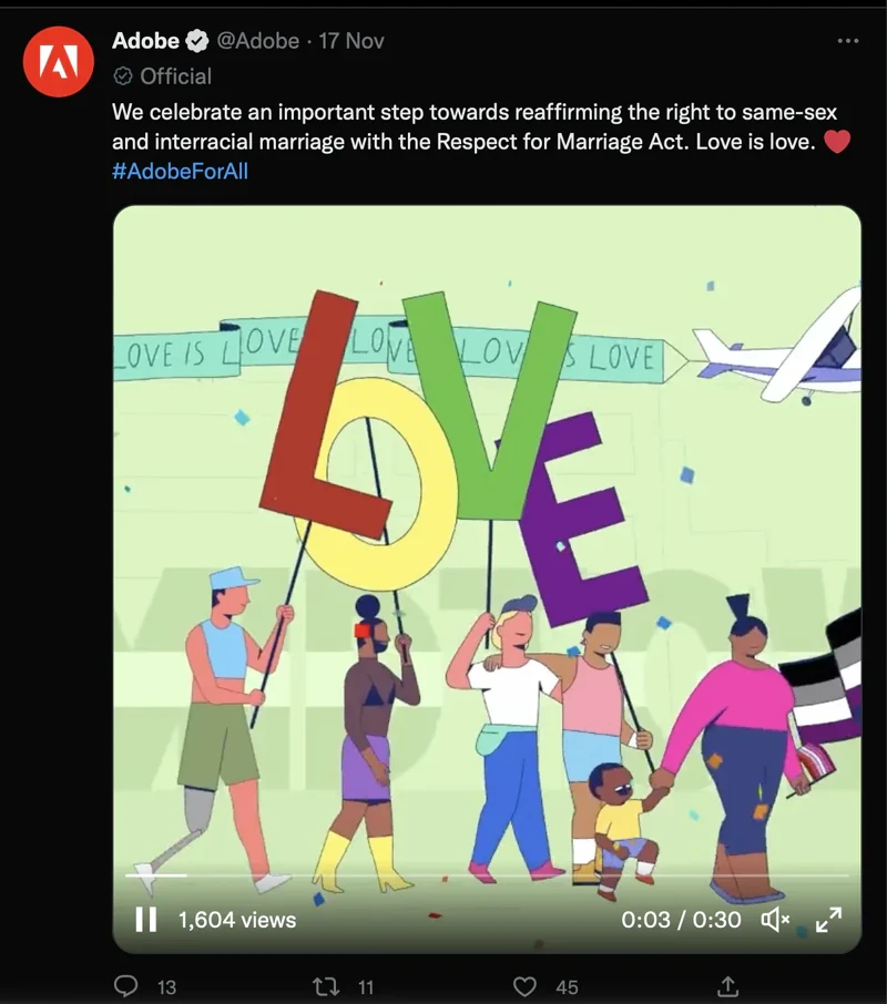 Adobe's Twitter posts are short, sweet, and creative and do an excellent job of capturing their #CreativityForAll celebration. They credit graphic designers, advise creators, make posts pleasing to the eye, and talk smart about their brand. Their regular use of stunning images and videos in every post and short text makes engaging with Twitter followers easy.