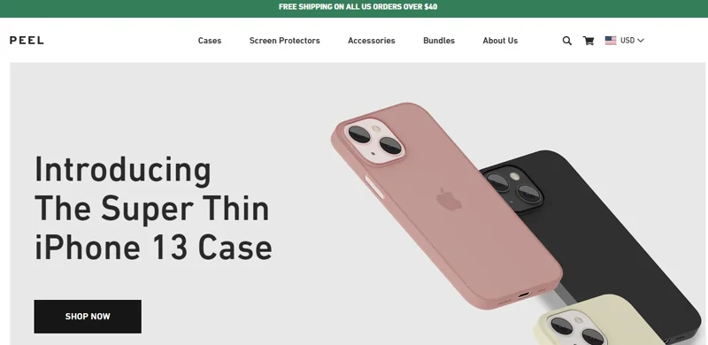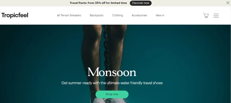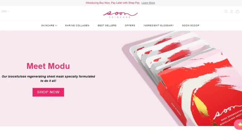 The shop stylishly promotes its new feature Buy Now, Pay Later and a tempting free shipping deal, complementing it with a clear call to action and animation that does not exacerbate visitors.