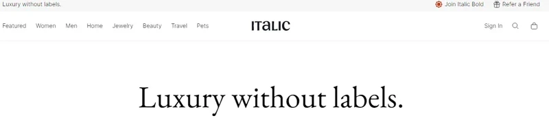 This shop’s hello bar contains a lot of info, yet it remains completely minimalistic and noninvasive to your personal space. Here you can find their tagline, mention the most exquisite product, and link to new arrivals, accompanied by an invitation to join their referral program or Italic Bold club membership (a little off-topic, but their slogan ‘It Pays to Be Bold’ is a real jewel).