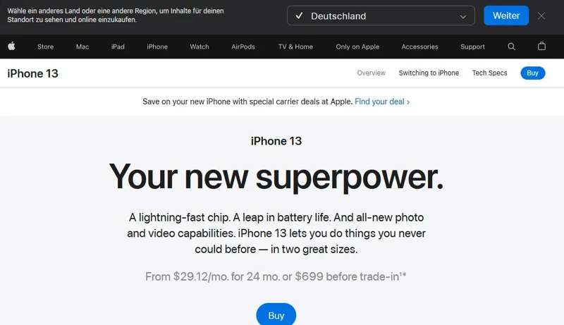 This is an example of effective display rules and personalization. Are you from Germany? The site will identify it and change the message’s language. Now you can confirm the location to get a more relevant experience. But if you still want the visitors not to miss out on your special deals, you can nest another pop-up below the navigation bar.