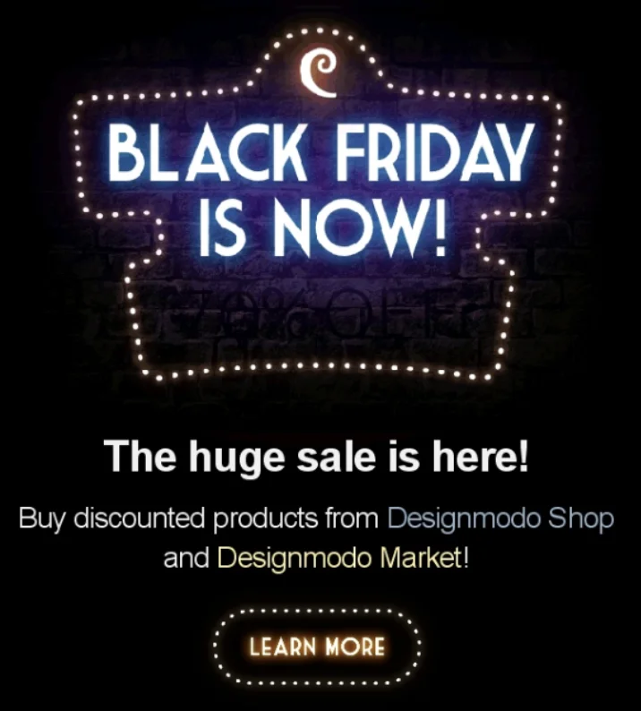 Those who have stayed true to the classic black and yellow color scheme often have a more restrained Black Friday email design: a black background and a few bright accents.