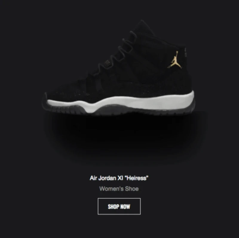 Since Nike has chosen several products for its themed Black Friday email, it's understandable why they added their call-to-action button below each product. So the client gets directly to the page with the product they like and makes a purchase faster because the stock of goods is limited.