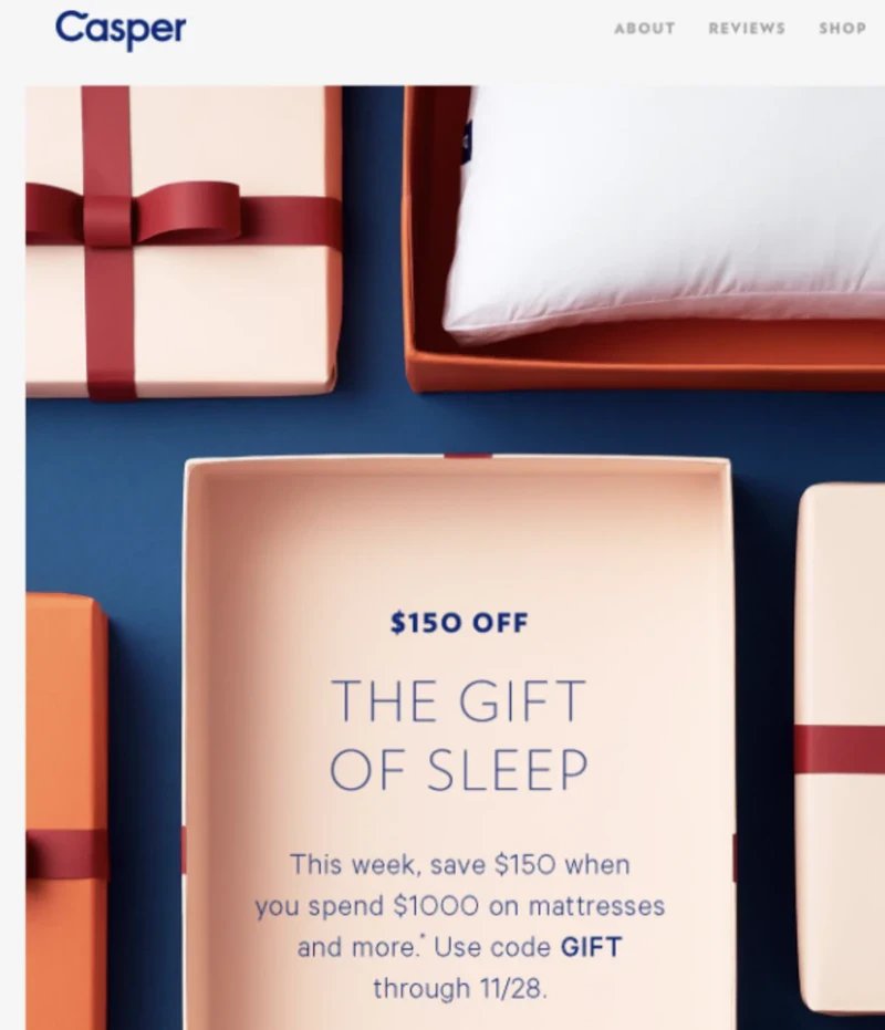 The color palette of Black Friday emails is not only soothing and sleepy, which is in line with the intention of the company that sells mattresses but is also consistent across all platforms and channels.