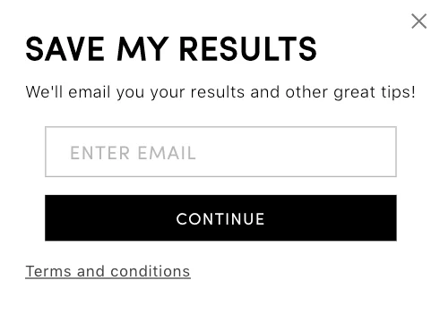 Topshop not only gains insights into your individual style, but also utilizes this information to enhance future product recommendations, customized to your specific preferences. Topshop asks you to create an account to design your outfit and join their newsletter at the end of this highly graphic quiz.