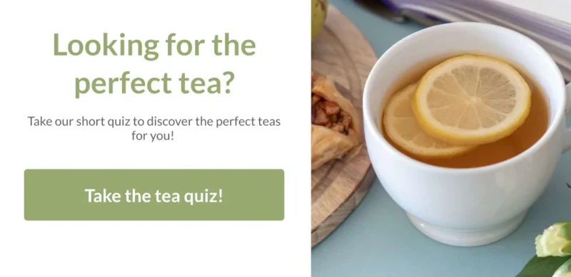 Cup and Leaf asks whether you're seeking the ideal tea and offers you to complete a brief quiz to discover your new favorite tastes.