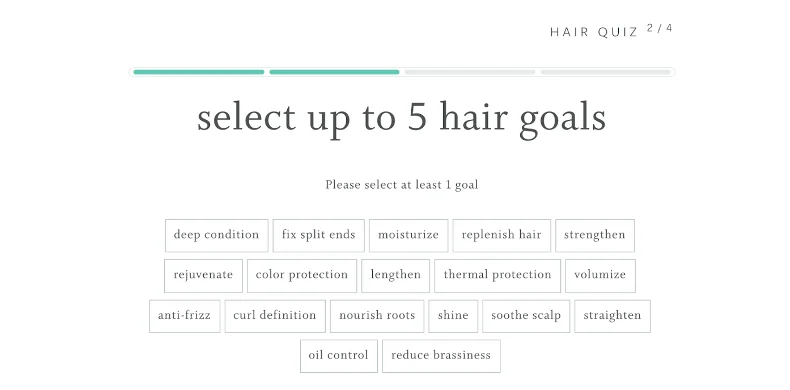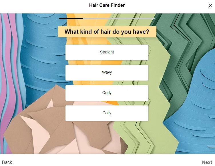 Customers might quickly become confused and overwhelmed since the store provides a diverse range of hair care items. The step-by-step quiz funnel assists in narrowing down all of those alternatives and locating the best items for them.