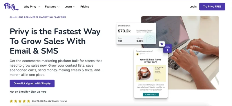 Privy is an excellent alternative to OptinMonster, with a wide selection of pre-designed templates that make it easy to create visually appealing pop-ups. It offers advanced targeting options like exit intent and cart abandonment triggers that help capture visitors' attention and increase conversions. Privy can integrate seamlessly with popular e-commerce platforms so that you can use your existing infrastructure. You can also use A/B testing capabilities and robust analytics to optimize your campaigns for better performance. Whether you're an e-commerce business or a marketer looking to boost your lead generation efforts, Privy provides the tools to create compelling pop-ups and achieve your desired results.