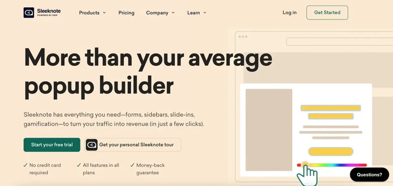 Sleeknote might be just what you need. With its easy-to-use drag-and-drop editor, you can create visually appealing pop-ups quickly. You can also target your desired audience using advanced triggering options based on specific actions or behaviors. Sleeknote integrates seamlessly with primary email marketing tools and CRMs, streamlining your lead-generation campaigns. You can even measure the effectiveness of your pop-up and optimize them through in-depth analytics and A/B testing. With Sleeknote, you can create engaging and personalized pop-ups that capture visitors' attention and drive conversions.