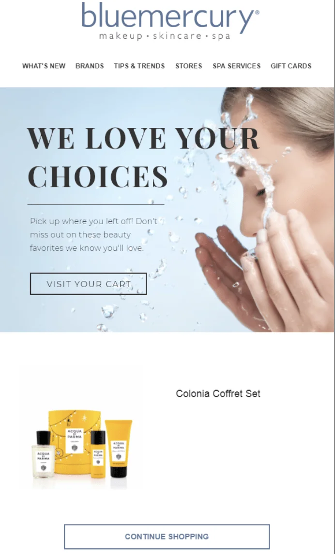 Abandoned Cart Email to remind a customer of items left in their online shopping cart.