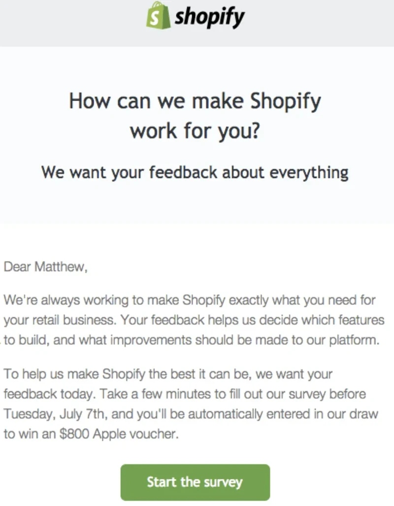 Product Feedback Email to request feedback about a product or service.