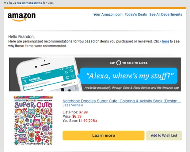 Personalization is a kind of marketing technique in the e-commerce industry. Nowadays, all the customers discovering the required products among the available ones are captured in the databases as a huge pool of information called Big Data. Then, through proper filtering and analysis of this information, companies estimate the patterns that customers follow or have followed. This allows companies to understand a customer’s point of view and provide the services/products they expect in the form of recommendations. Use the recipient’s name and personalize the content of the email as much as possible. This shows that you value the relationship and are not sending a mass email.