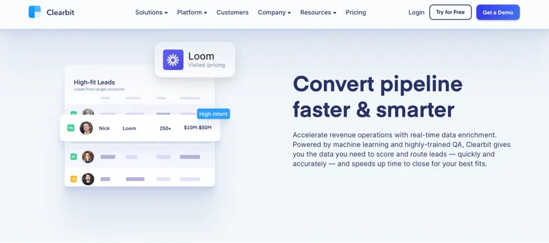Clearbit is a data enrichment tool that provides detailed information about leads and customers. It helps you gather data on companies and individuals, including firmographics, technographics, contact information, social profiles, and more. Clearbit integrates with various CRM and marketing automation platforms to enhance lead intelligence and segmentation.
