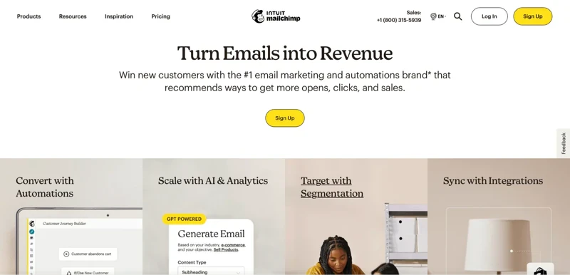 Email templates, marketing automation, audience segmentation, A/B testing, landing page builder, analytics, integrations, and more.