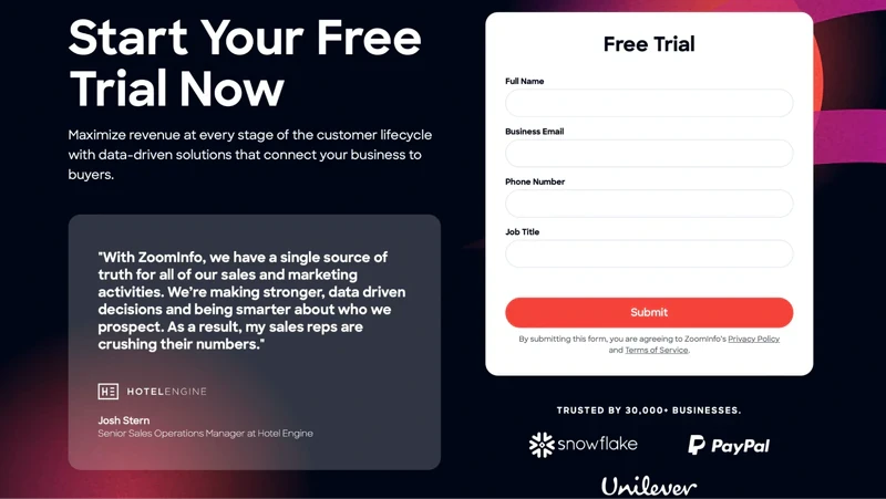 ZoomInfo is a comprehensive B2B contact database and lead generation platform. It provides access to a vast company and contact information database, including firmographics, contact details, technographics, intent data, and more. ZoomInfo also offers lead scoring, list building, prospecting tools, and integration with CRM systems.