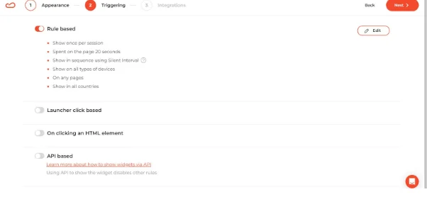 Here you need to choose the operation option of your pop-up window, when, how, and where it should appear.
