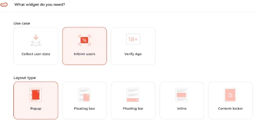 Choose your perfect goal and type of your future pop-up. The user on your site has to clearly understand what you want from them and what they will receive in return.