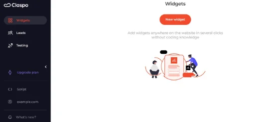Next, you click on the Widgets button and create a new one. You need to come up with a name that the client will definitely pay attention to.