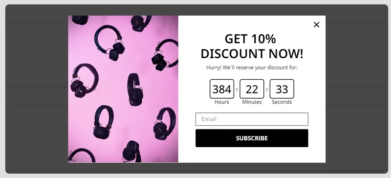The pop-up needs to stand out, so use contrasting colors. For example, combinations of yellow and black and pink and white attract attention.