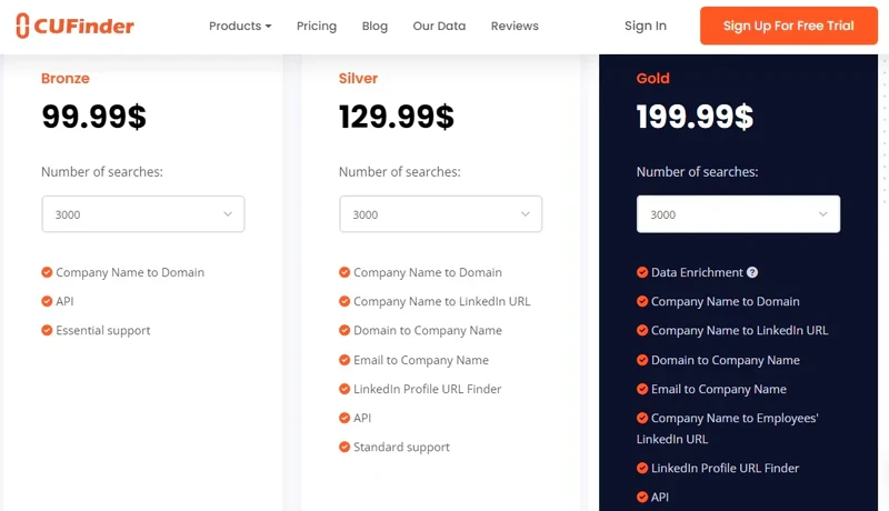 The difference between the plans (Bronze, Silver, and Gold) is not in the number of searches you get, but in the information you receive as a result.
