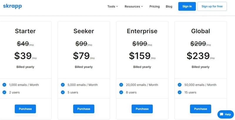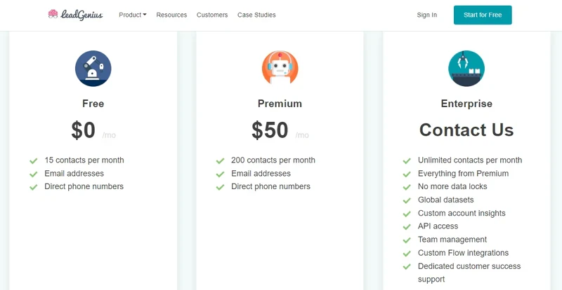 Free. 50 records per month & essential support (no API, integrations, and continuous enrichment)