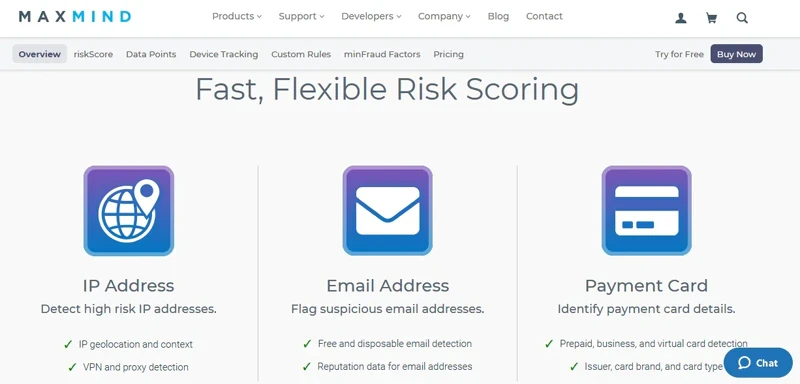 The minFraud Transaction Risk API program equips its users with instruments to detect IP addresses, email addresses, or payment card details that seem suspicious and might jeopardize your security.