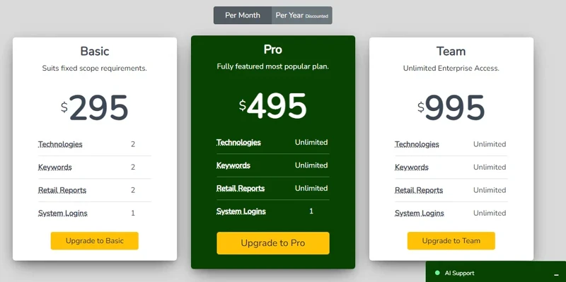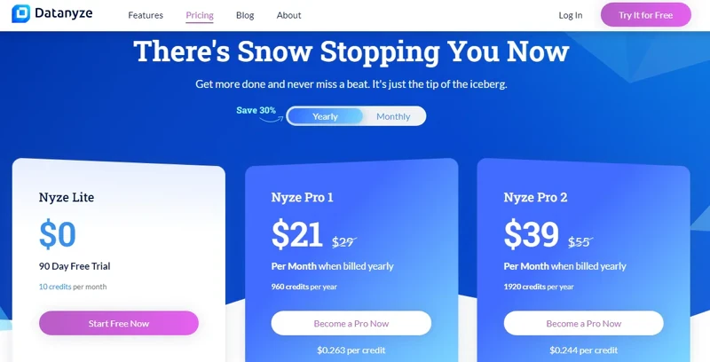 Nyze Pro 1. A $29 per month package that buys you 80 credits.