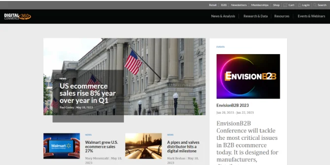 Digital Commerce 360 provides comprehensive coverage of the e-commerce industry, including news, analysis, and research reports. It covers online marketplaces, omnichannel strategies, and consumer behavior.