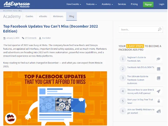 AdEspresso is a comprehensive platform for managing and optimizing Facebook and Instagram advertising campaigns. Their blog offers insights into effective social media advertising strategies, ad targeting, and campaign optimization.