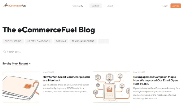 eCommerceFuel is a blog and community for experienced e-commerce entrepreneurs. The blog highlights industry news, insights, and discussion forums to help online retailers stay informed and connect with like-minded professionals.