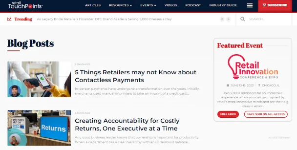 10. Retail TouchPoints blog: Content focused on optimizing the customer experience