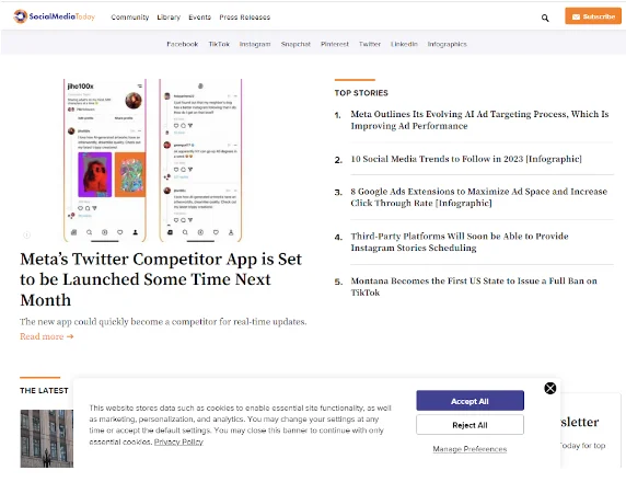 Social Media Today is a leading online publication that covers all aspects of social media marketing. Their blog offers info about social media strategies, content creation, influencer marketing, and advertising.