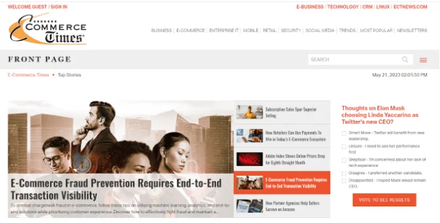 eCommerce Times covers the latest news and trends in the e-commerce industry, including topics like online retail, technology advancements, payment solutions, and digital marketing strategies.