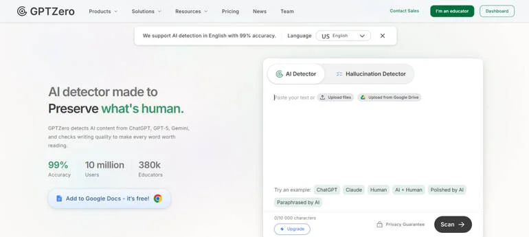 GPTZero is valuable for content teams who need to verify the authenticity of submitted work or ensure their own AI-assisted drafts maintain a human voice before publishing.