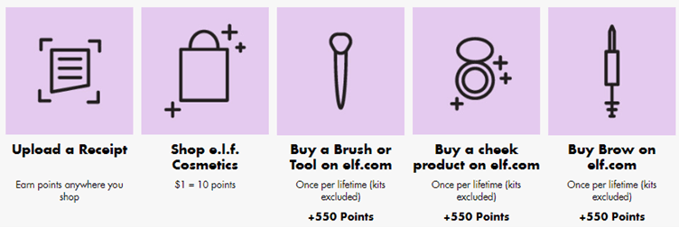 E.l.f uses the tiered loyalty program. The levels of loyalty are the main emphasis of these programs. In other words, your clients accrue more rewards the more loyal they are. Tiers in your loyalty program can help to maintain consumer engagement and brand awareness. Tiers also incorporate gamification into the process, allowing users to advance through levels based on how much they spend or “play.”