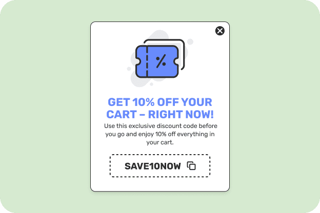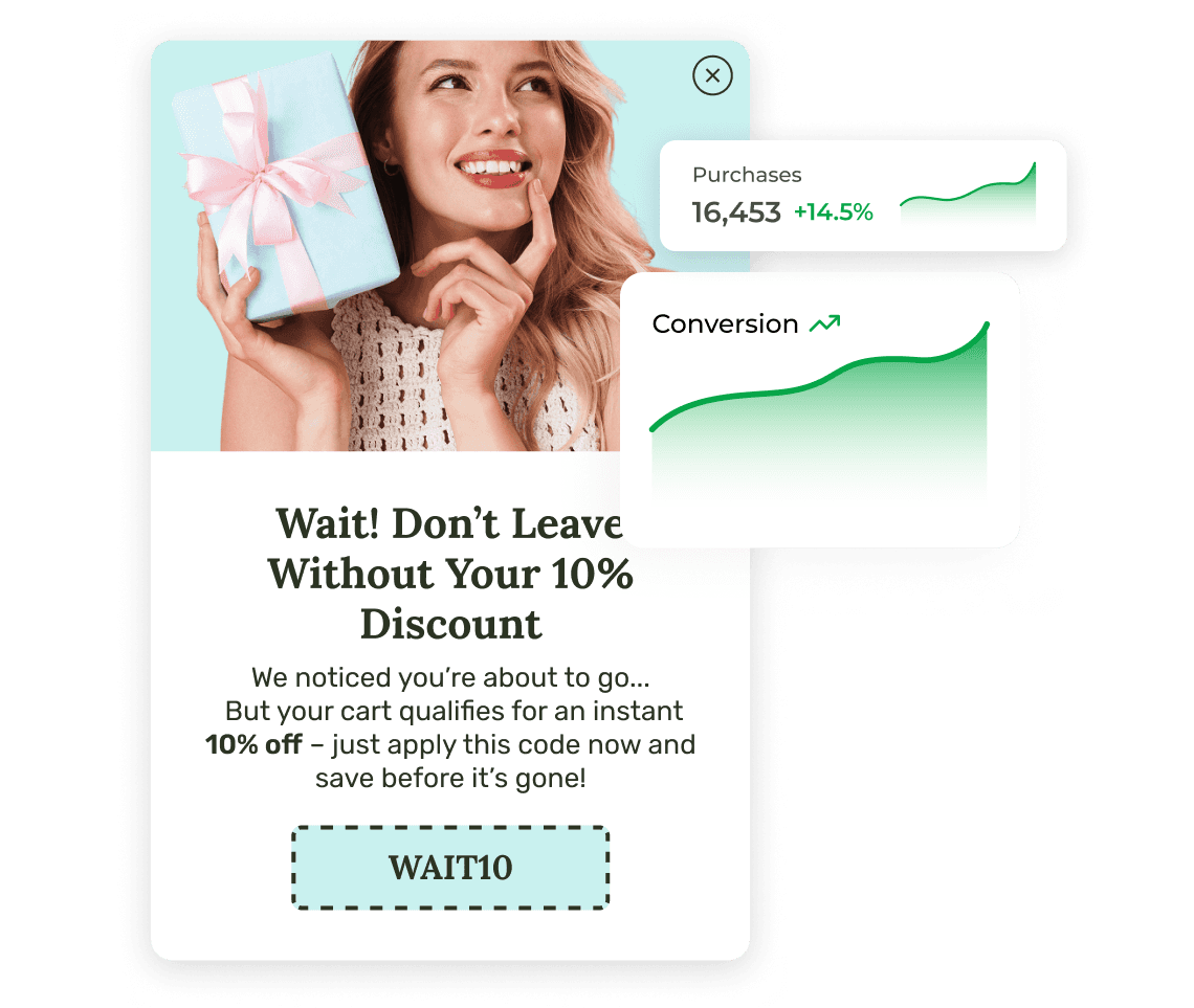 When someone is about to leave, you still have a moment to show something relevant. Instead of losing the session, you can use that moment to present an offer and turn it into a completed purchase.