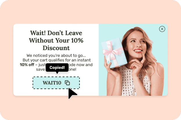 Stop visitors right before they leave with a timely offer or discount. Exit-intent gamified popups give users a reason to stay, helping you capture leads and recover lost conversions.