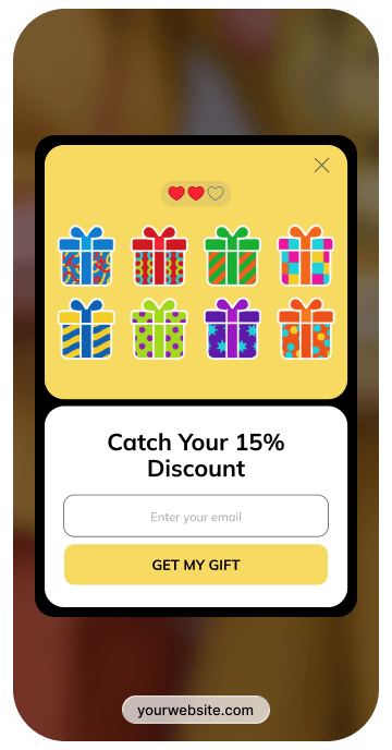 Treasure hunt popups make rewards feel earned. Visitors click through different elements to reveal what’s inside and unlock an offer at the end. This creates a sense of progress and makes people more likely to subscribe and use promo code.