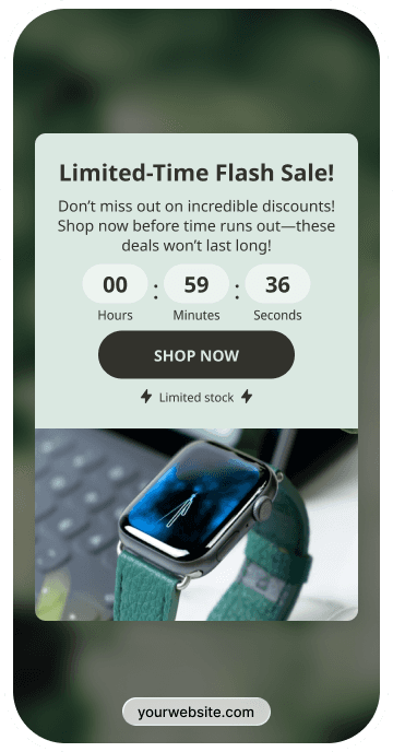 Flash sales need speed and visibility. With countdown timers and multiple formats, you can reach visitors at the right moment and convert more of them before the sale ends.