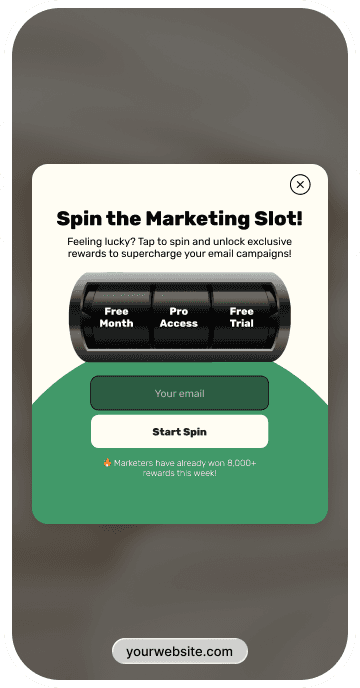 Use slot machine popups to capture contacts or drive purchases with a simple game. Visitors spin to reveal a reward — like a discount or product offer — making the interaction quick and engaging. It gives people a reason to act, while you stay in control of the rewards.
