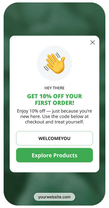 Make the first purchase feel like an easy decision. With popups and floating boxes, visitors can copy a discount code and use it at checkout in seconds.
