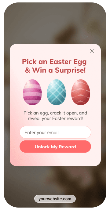 Break the egg popups spark curiosity without extra steps. Visitors choose an egg and reveal a reward inside — like a discount or bonus. The interaction is quick, with no delay between click and reward — especially during Easter, when this format feels right at home.